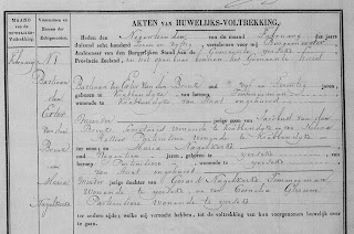 Bruidegom en diens vader heten allebei Arie de Jong Saakes. Je zou dus kunnen vermoeden, dat de achternaam van bruidegom en diens vader de Jong Saakes is, hetgeen niet het geval is. Een van de getuigen is Marius Saakes, broer van de bruidegom. In de geboorteakten van de kinderen van Arie de Jong Saakes jr. hebben die kinderen als achternaam de Jong Saakes, als we de gezinskaarten van Eethen moeten geloven: