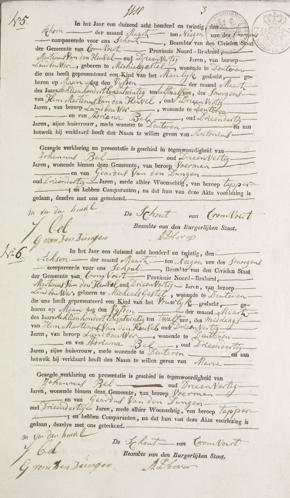 De tweede drieling, die ouder dan 50 jaar is geworden, is de drieling van den Heuvel uit Cromvoirt. Deze drieling, Josephus, Maria en Antonius van den Heuvel werd op 5 maart 1821 te Cromvoirt geboren uit het huwelijk van Martinus van den Heuvel en Adriana Bel: