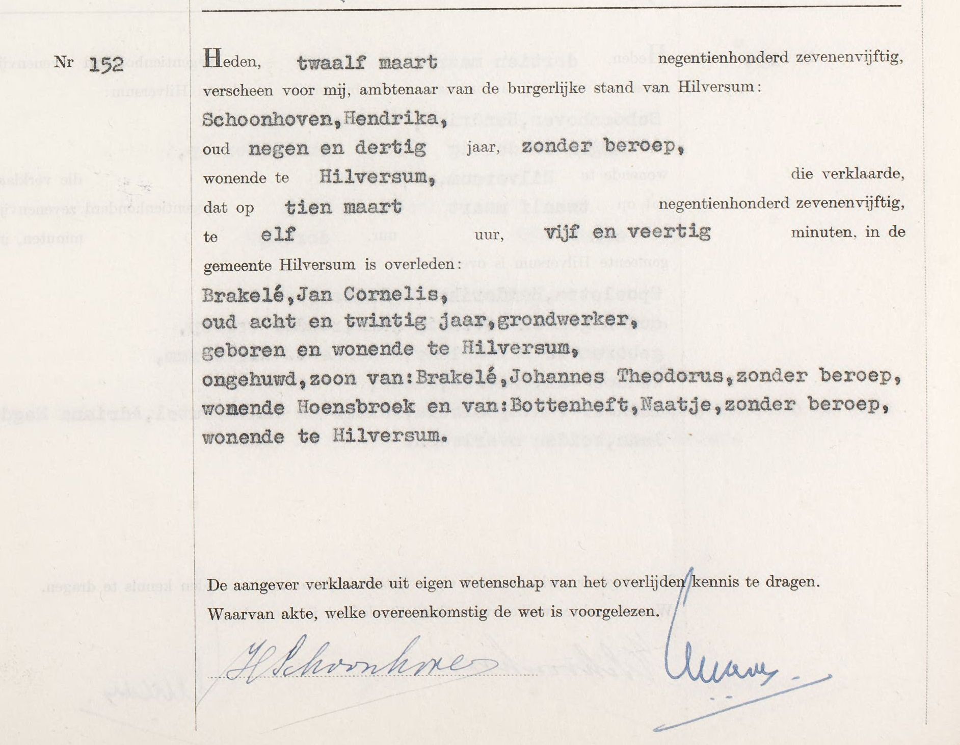 De achternaam van het kind is niet gecorrigeerd: Jacob Verhaaren overlijdt op 27 september 1968 ongehuwd te Leiden: