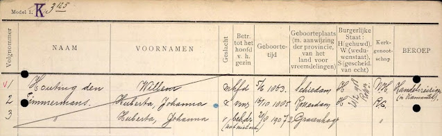 Moeder Catharina Wilhelmina de Vries wordt samen met haar zoon Johan Philip vermeld in het alleenstaandenregister van Rotterdam van 1880-1890, deel C-36 blad 221, zij is dan dienstbode: