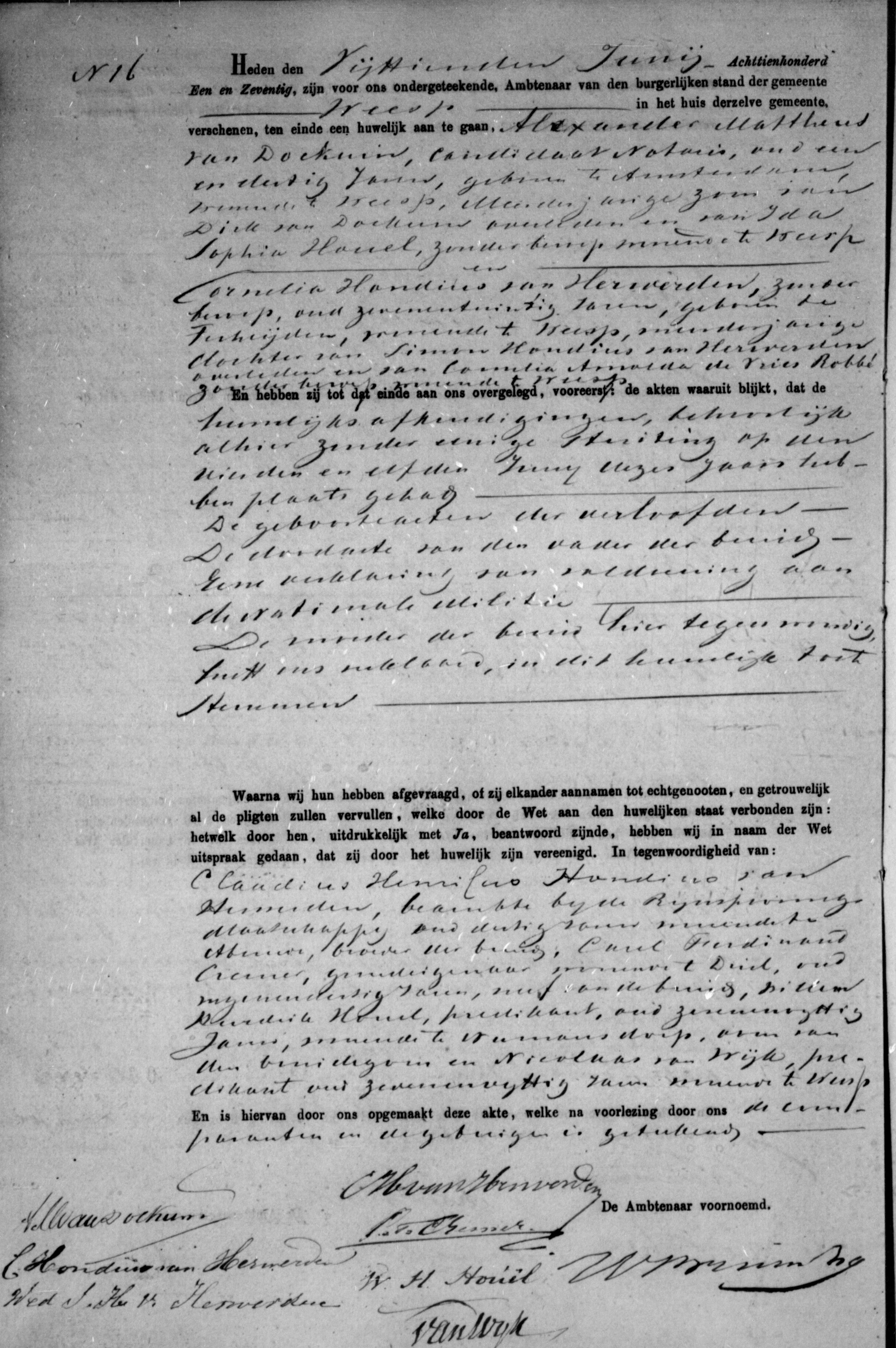 6 Cornelia trouwt op 15 juni 1871 te Weesp met Alexander Mattheus van Dockum en heet dan Cornelia Hondius van Herwerden en zij is die naam blijven behouden: